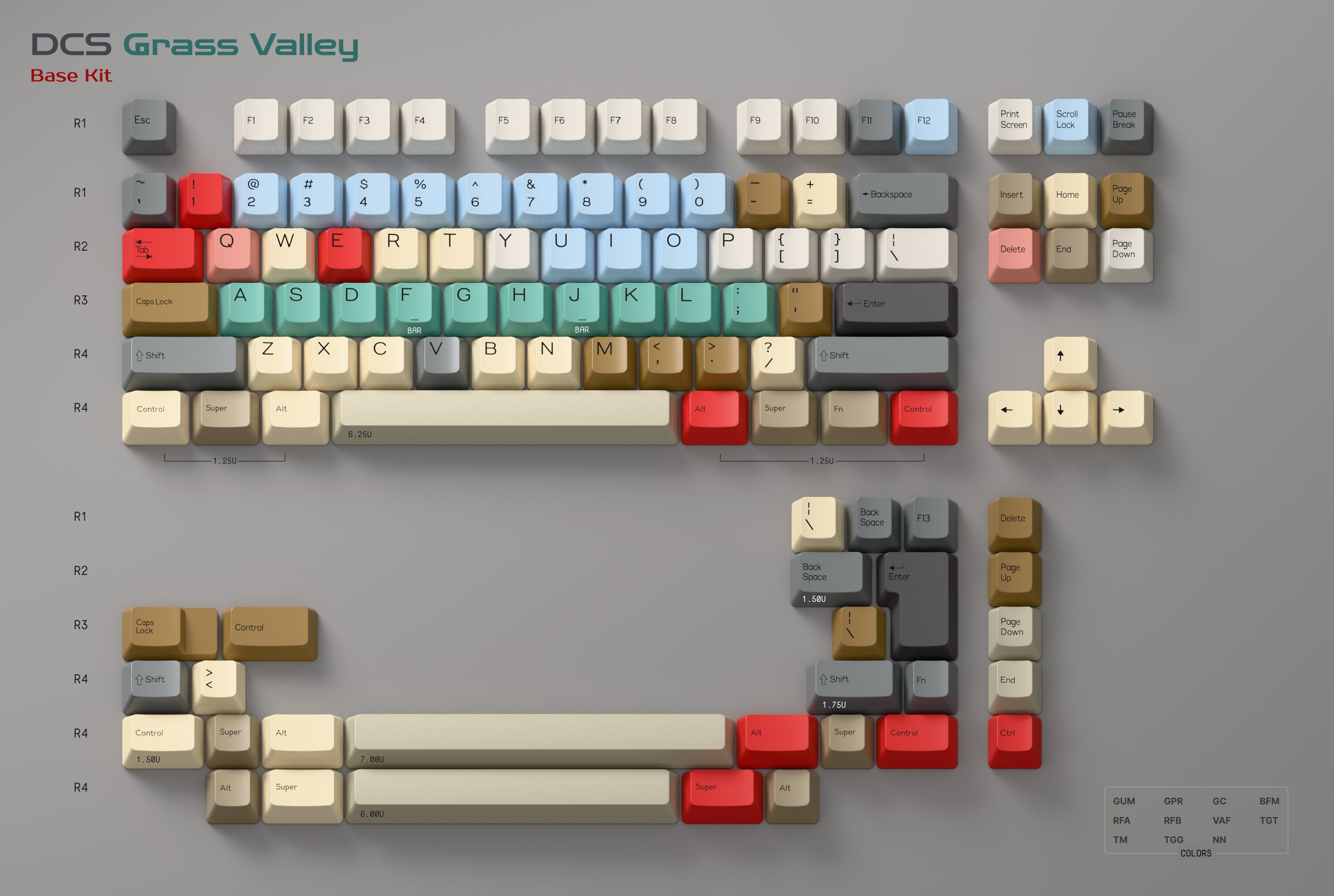 DCS Grass Valley is a keycap set inspired by media / film editing keyboards from the '80s and '90s designed by Shark!