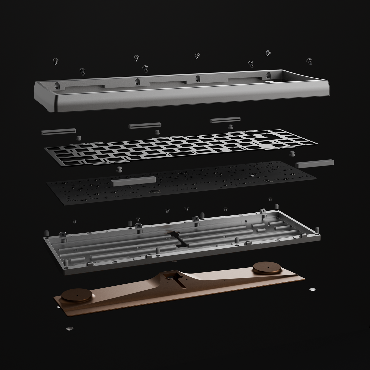 - Optional foam gaskets will be given to users to install along the angled screws. There needs to be roughly a 0.1mm gap for tolerance reasons between the bottom and top frame. This gap can cause some unwanted frequencies. We found adding some foam that can compress in this gap solves this issue, but we heard feedback that people wanted this to be optional. This will just be added in the production run on a foam sheet.