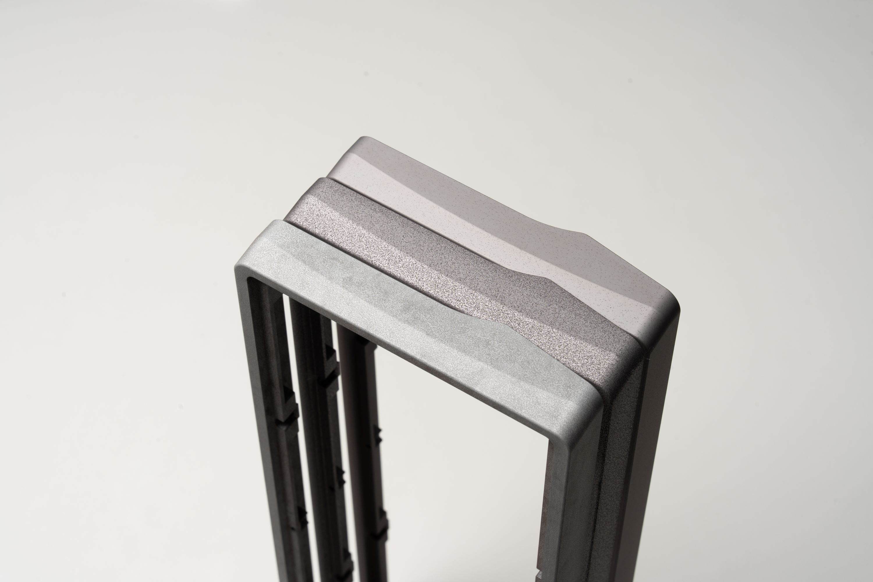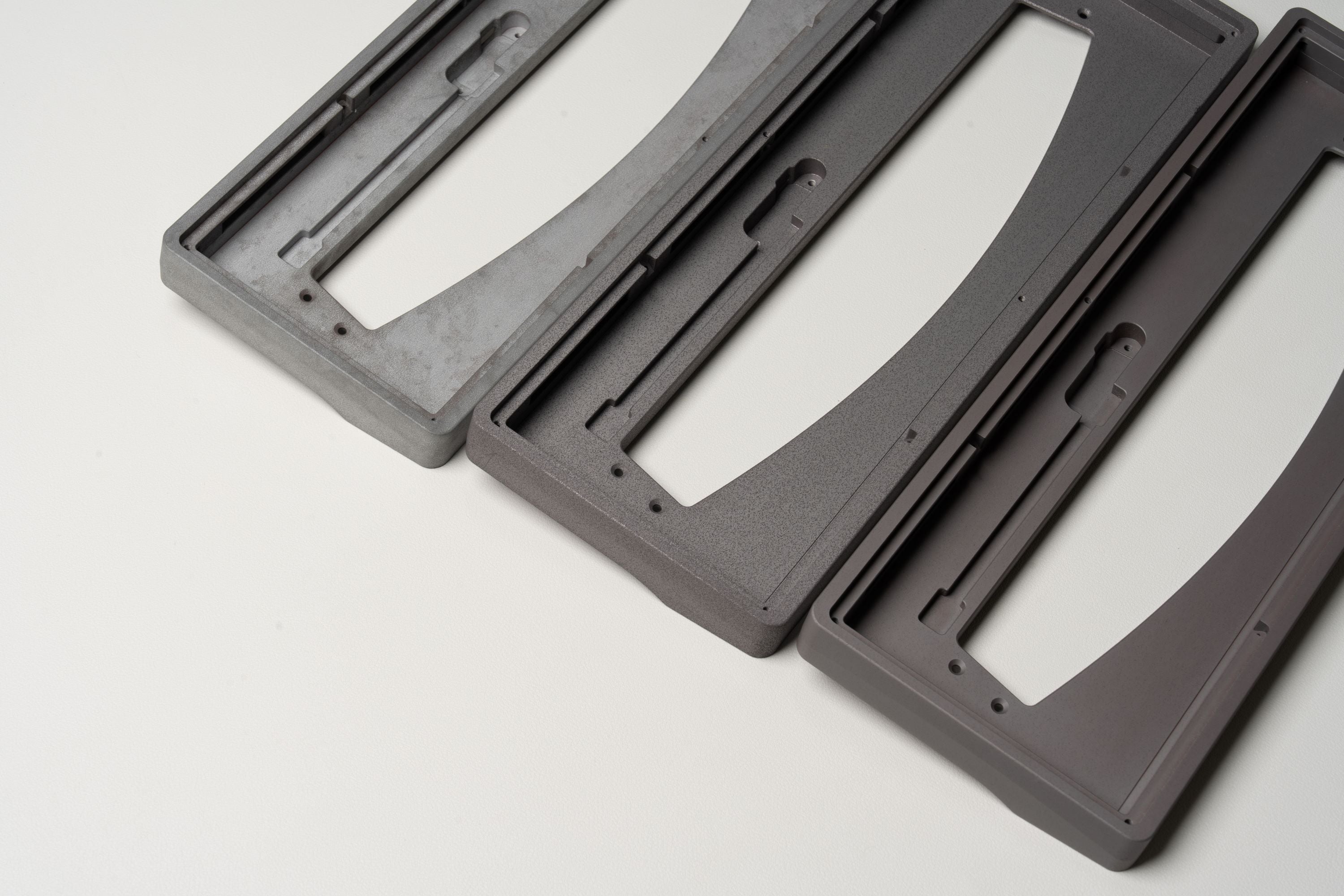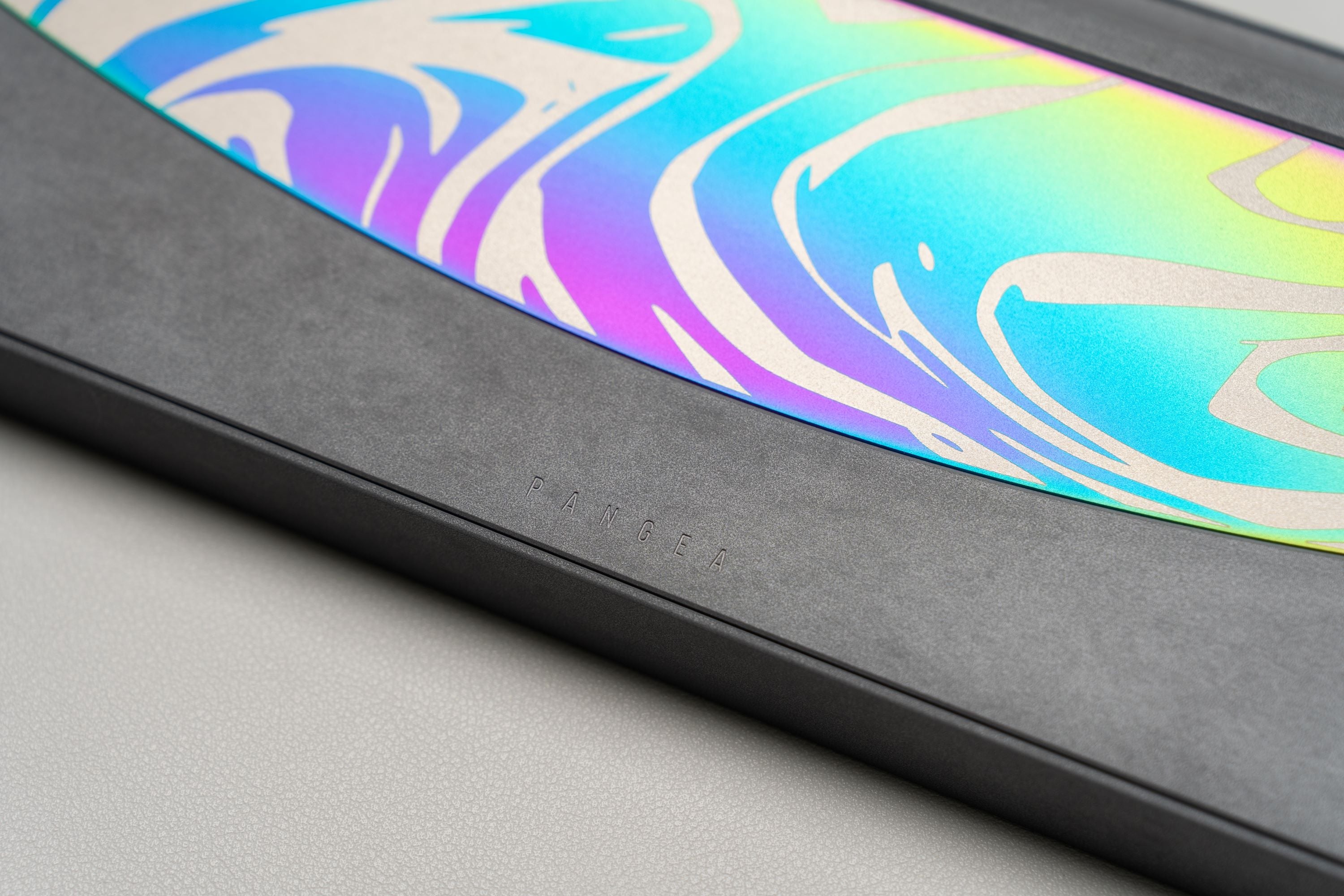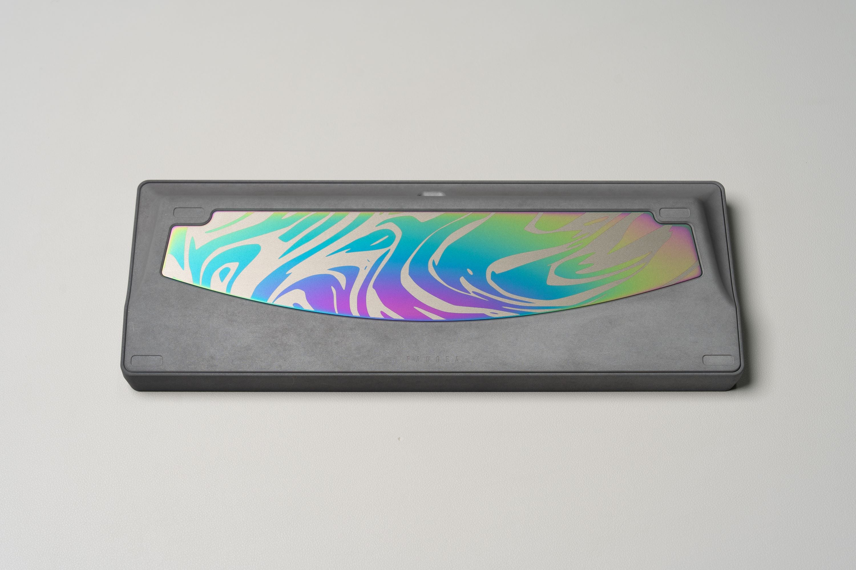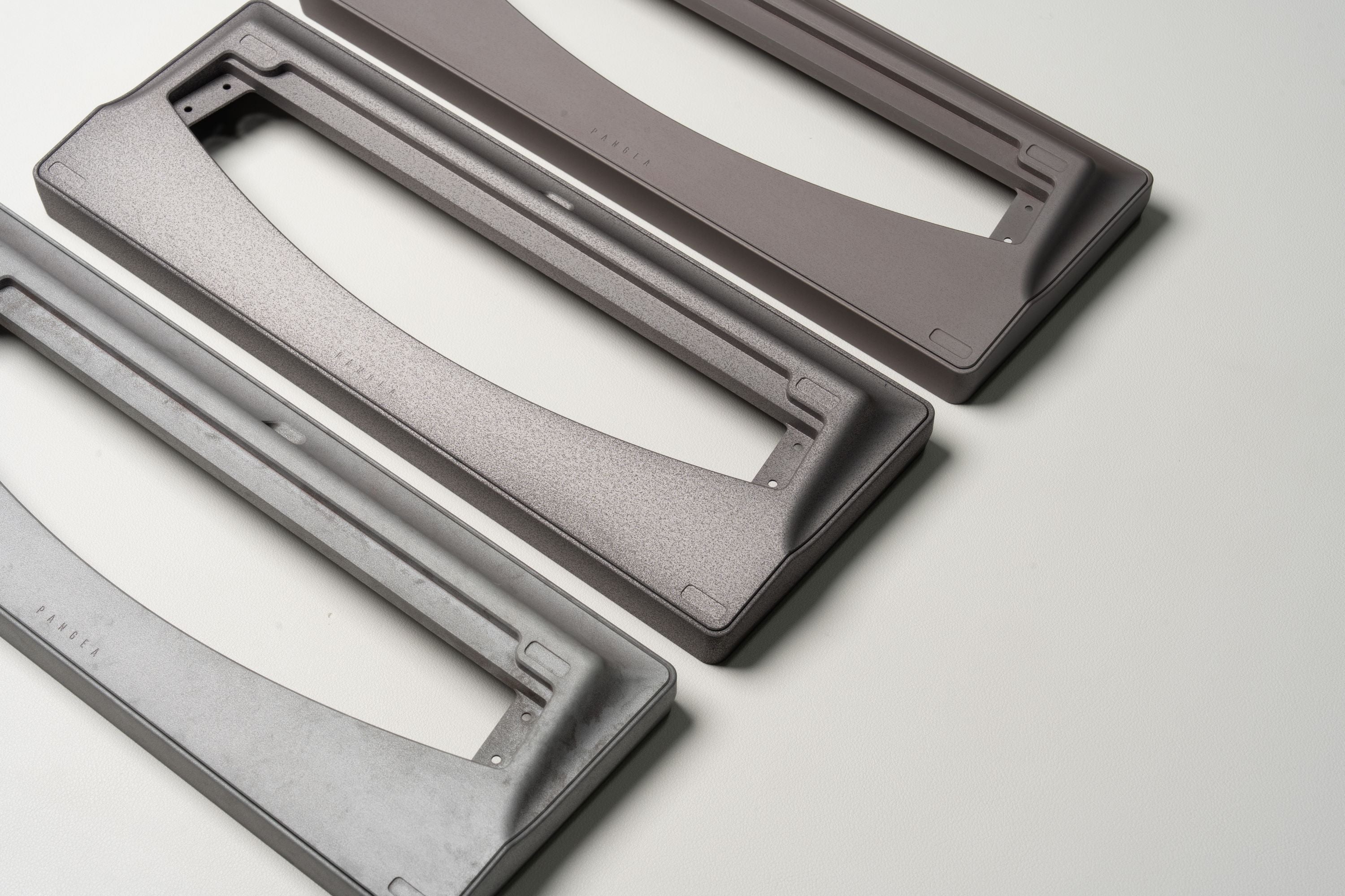 Pangea Mini takes many design elements from the Pangea Fullsize. The side profile shares the same arching HG style taper to give some depth when viewed from the side. The top view also showcases the interchangeable top frame. While Pangea Fullsize used this part to allow for a swappable numpad, Pangea Mini has different layout options offered in many different material and finishing options for a distinctive top down aesthetic.