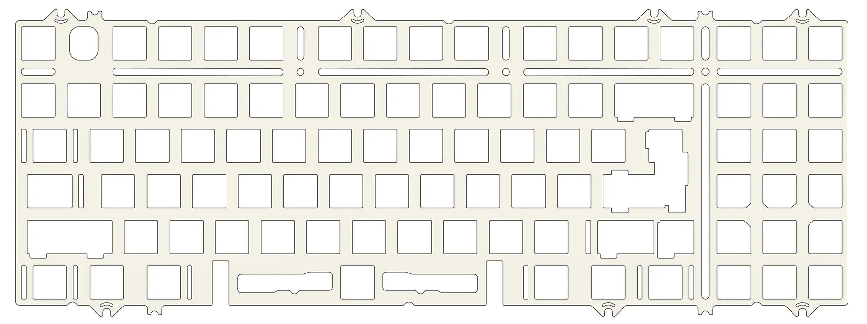 Designed by Bowl Keyboards, Synovia uses grommet gaskets to fully isolate the plate from the case while also allowing a customizable sound and feel using the different gasket durometers provided.